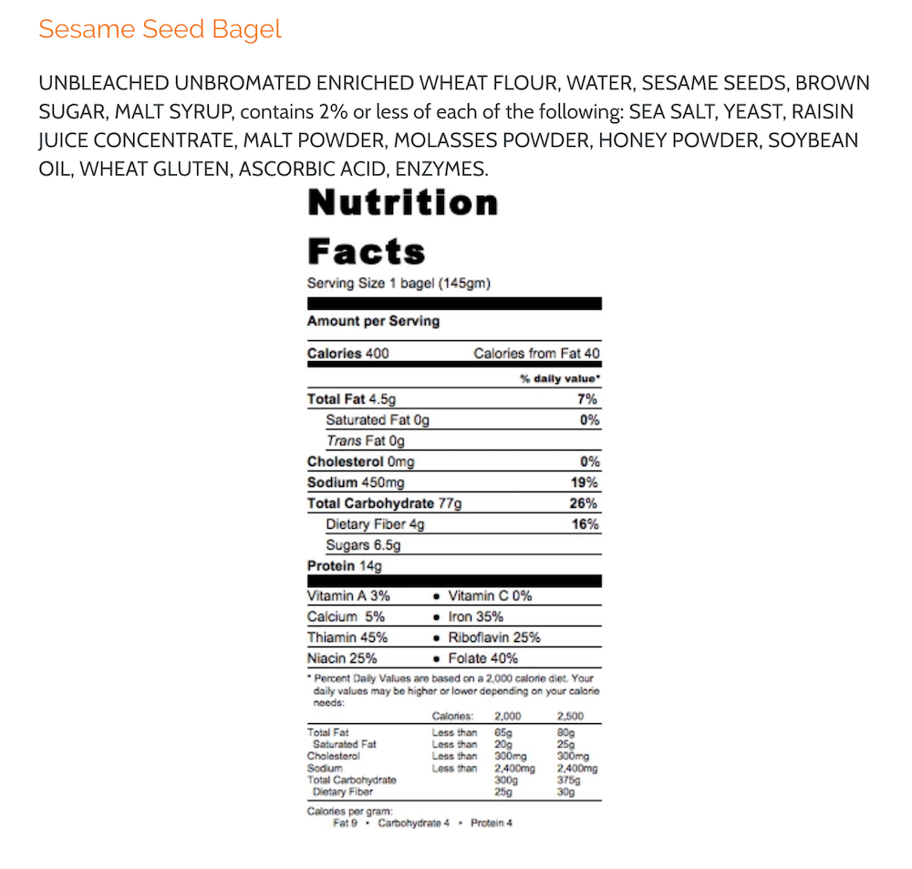 Einstein Bagels didn’t fare much better actually. Their Classic Sesame Bagel tips the scale at 57 grams of carbs.